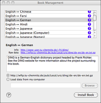 De losse woordenboek-modules pluk je zo vanaf het internet. Op die manier leg je je eigen woordenboekcollectie aan op basis van externe bronnen die anderen voortdurend bijwerken. Kom je op het web, in een document of een programma op je Mac een onbekend woord tegen, dan voer je het in WordLookup in. Vervolgens spuwt de vocabulaire-virtuoos haar woordwijsheden uit.